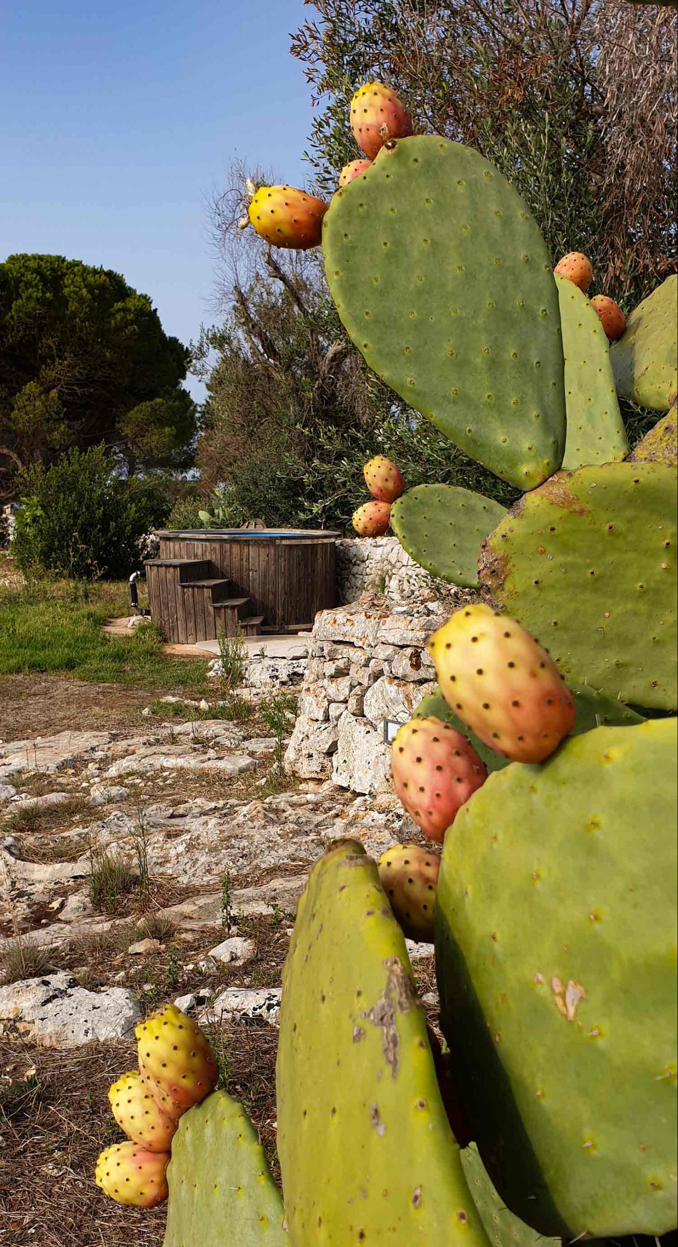 La posizione in cui si trova questo angolo di paradiso è magica: il mare è lì, a due passi e se ne percepisce il colore all’orizzonte e l’aria salmastra. Ma qui siamo i collina, tra fichi d’India e ulivi: la sera le temperature si abbassano appena, qualche geco viene sempre a farci compagnia e il cielo è una trapunta di stelle (complice anche il ridotto inquinamento luminoso).